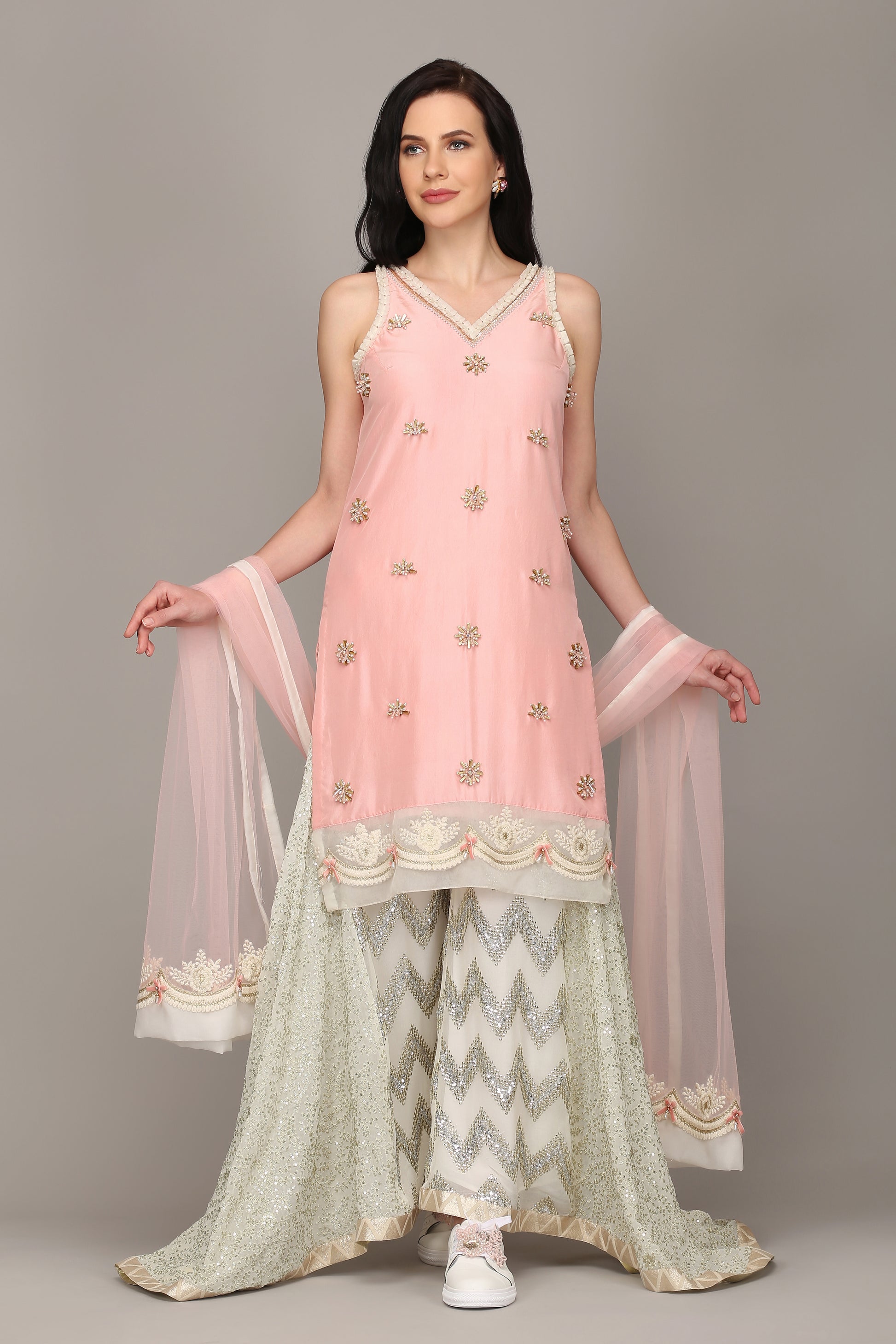 Length of the Sharara is standard 38 inches in front/back and 43 inches on the side