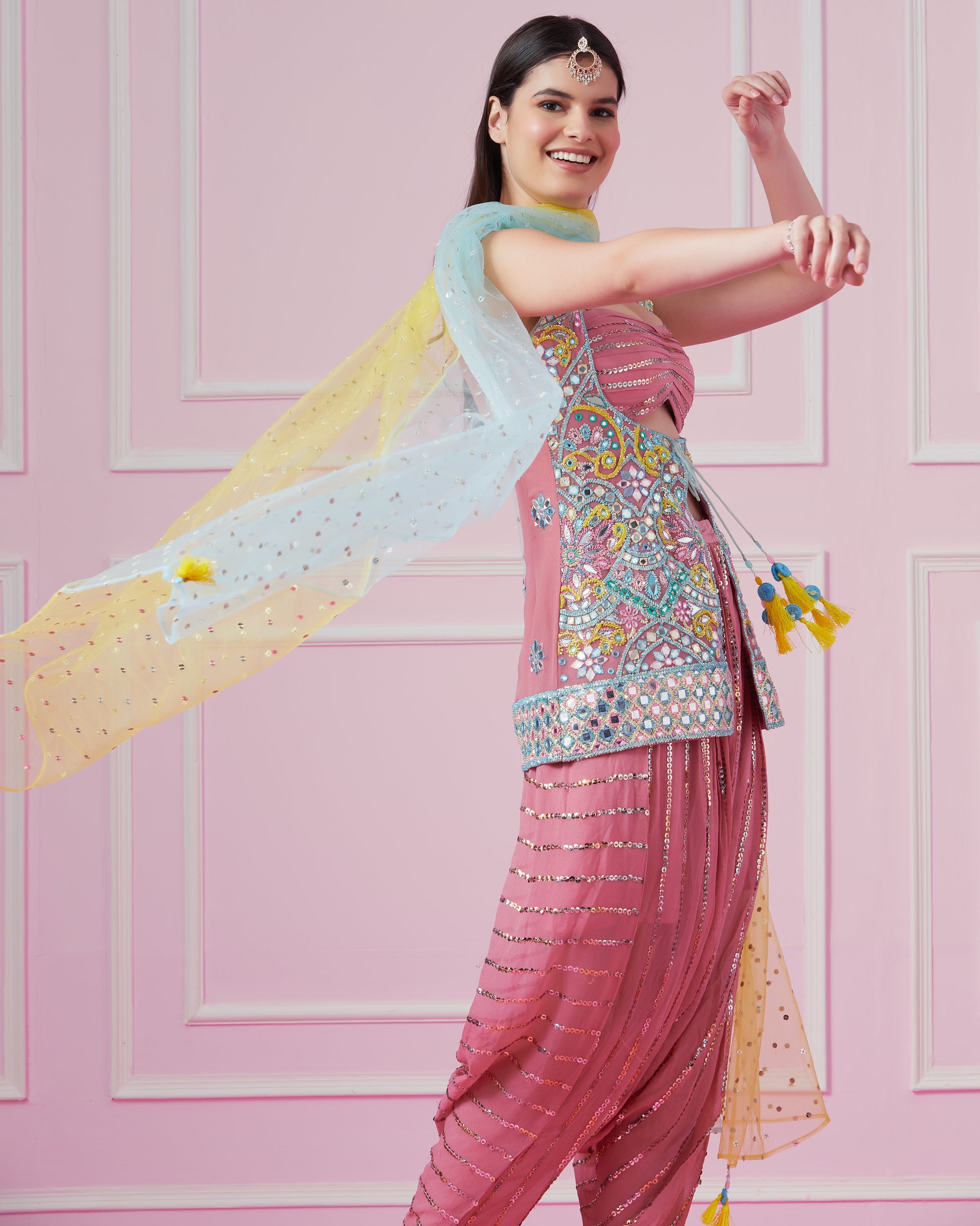Sequin, Pattra, thread embroidered georgette Kurta, sequin rouged bralet goergette, sequinned goergette patiala Salwar, net Duppata with sequins and tassels