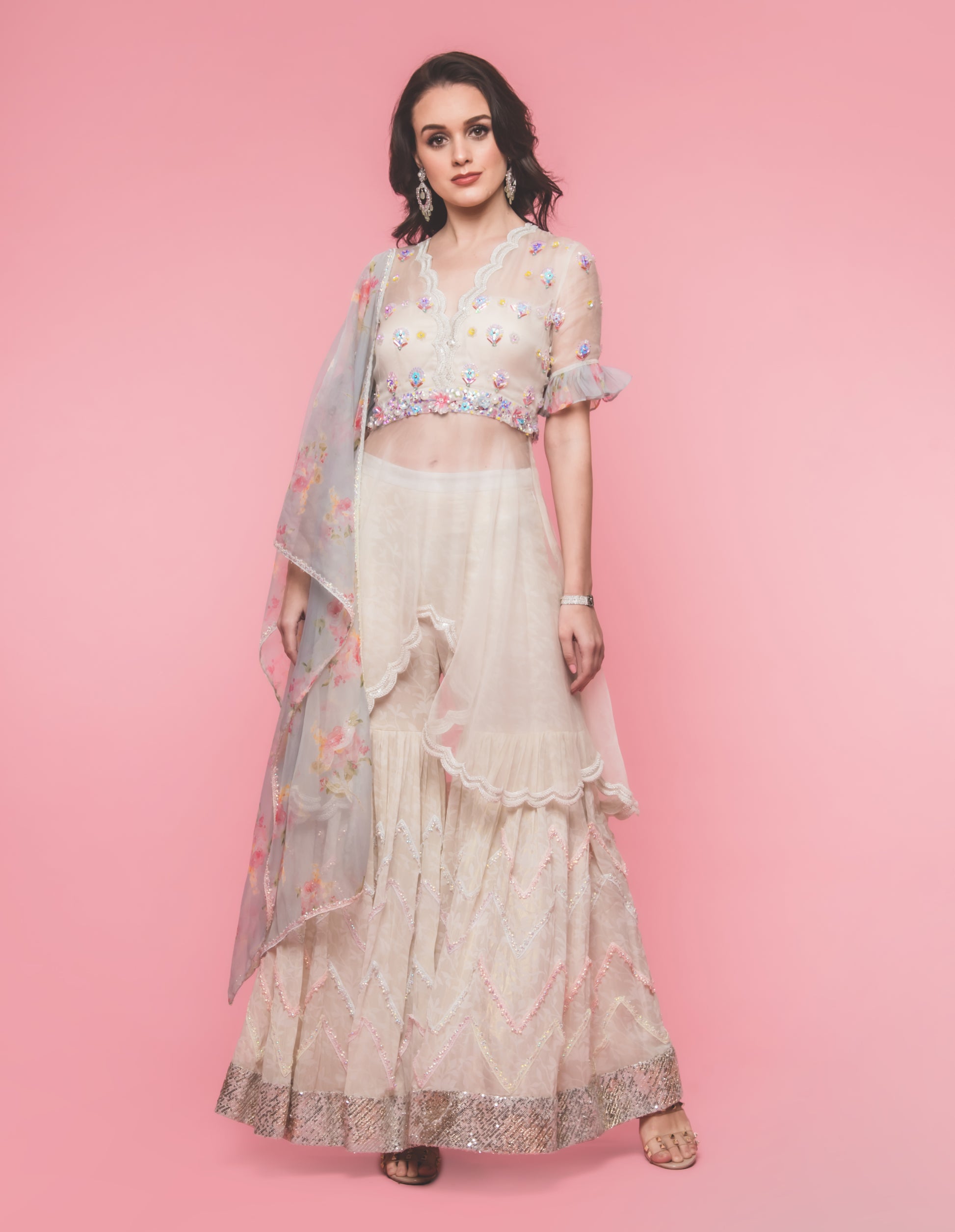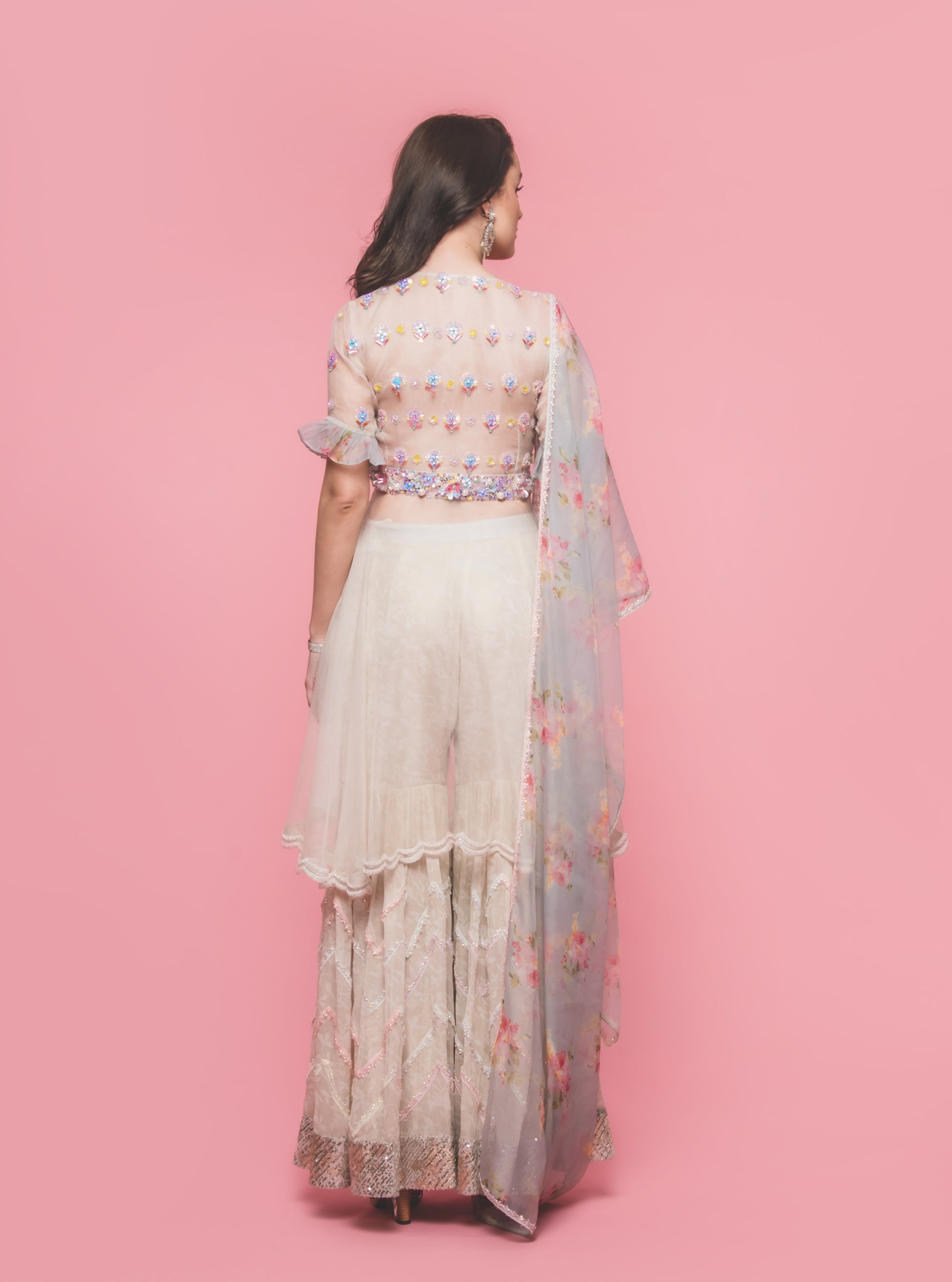 Pearl, Sequin, crystal beaded Organza fabric Peplum top with ruffle detail